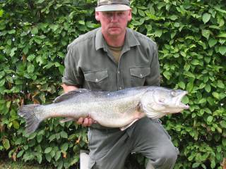 Im Flachwasserbereich des Vorbeckens kleinere Karpfen bis 3kg, Aale bis 65cm und große Brassen