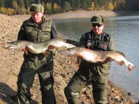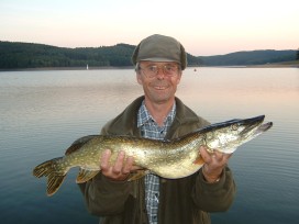 Im Hauptbecken beim Schleppen mit Wobbler vereinzelt Hechte bis 111cm (8,5kg)