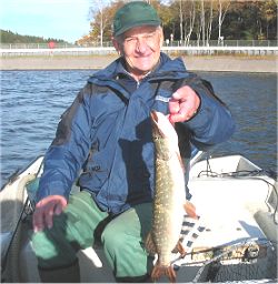 Beim Spinnfischen vom Boot aus ein Hecht von 117cm (9kg), beim Schleppen Fische bis etwa 80cm Länge