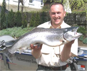 Am 12.4. wurde eine 78cm lange Seeforelle (6,3kg) verhaftet der Fisch wurde beim Schleppen mit Blinker gefangen, kurios: er hatte eine Bißspur über die gesamte Rückenpartie