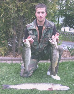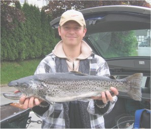 87cm langer Hecht und 2 Seeforellen von je 53cm vom 17.05.08, Foto: K. Klewer, Fänger: K. Klewer
