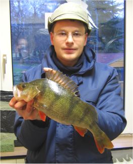 1,35kg schwerer Barsch (43cm) vom 15.01.2008, Foto: H. de Koning, Fänger: M. de Koning
