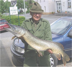 105cm langer Hecht (8,4kg) 19.05.08, Foto: M. de Koning, Fänger: H. Pakula