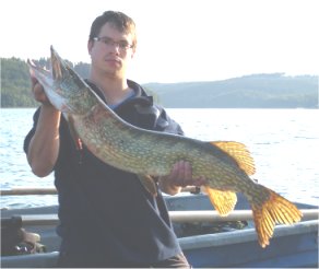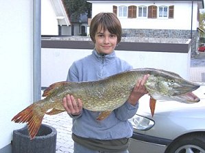 Beim Spinnfischen vom Ufer aus Hechte bis etwa 75cm, auf Köderfisch und beim Schleppen bis 98cm Länge