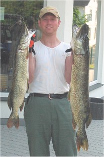 104cm (7kg) und 84cm (3,8kg) Hecht vom 18.06.08, Foto: M. de Koning, Fänger: K. Sandor