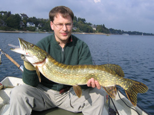 geschleppter 108cm Hecht (8,5kg) vom 24.08.08, Foto: M. de Koning, Fänger: M. Stüeken
