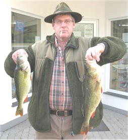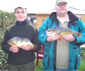 48cm (1,42kg) und 38cm (860g) Barsche vom 21.10.2009, Fänger: C. Spiekermann, Foto: M. de Koning