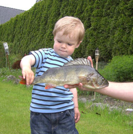 Ein zukünftiger Angler mit 42cm (930g) Barsch vom 21.05.2009, Foto: M. Rütten, Fänger: M. Rütten