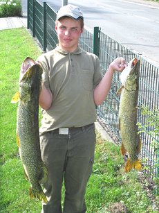 100cm (6,9kg) und 86cm (4,24kg) Hecht vom 13.07.2009, Foto: M. de Koning, Fänger: M. Schumann