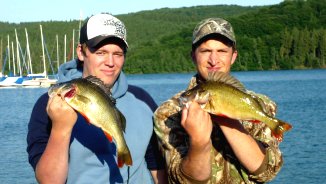 Im Hauptbecken auf Wurm vom Ufer aus gute Barsche und als Beifang vereinzelt Seeforellen bis über 60cm