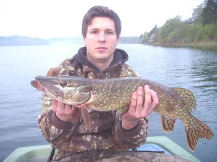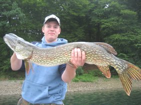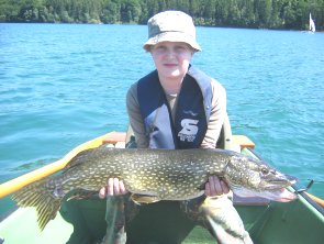 Sowohl vom Ufer als auch vom Boot aus gute Hechte bis 1,04m Länge