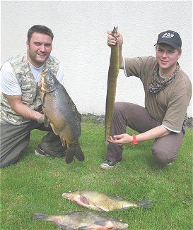 Eine erfolgreiche Session: 72cm Karpfen (7,2kg), Fänger: A. Matic, 83cm Aal, Fänger: D. Buzilowski, Brassen bis 63cm, Fänger: beide, in der Nacht vom 21. auf den 22.07.2012, Foto: M. de Koning