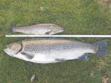 Ein hart erarbeiteter Erfolg: 93cm und 54 cm Seeforellen (9,75kg und 1,57kg) vom 16.03.2012, Fänger: M. Wenk, Fotos: M. de Koning