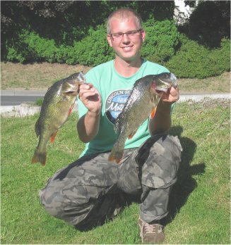46 und 47cm lange Barsche vom 07.09.2012, Fänger: T. Schreiber, Foto: M. de Koning