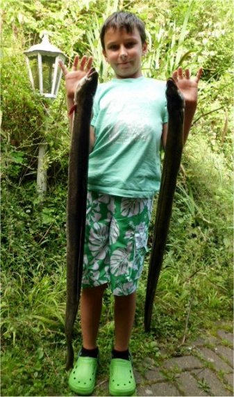 101 und 84cm Aale aus der KW 30, Fänger: M. und A. Klein, Foto: M. Klein